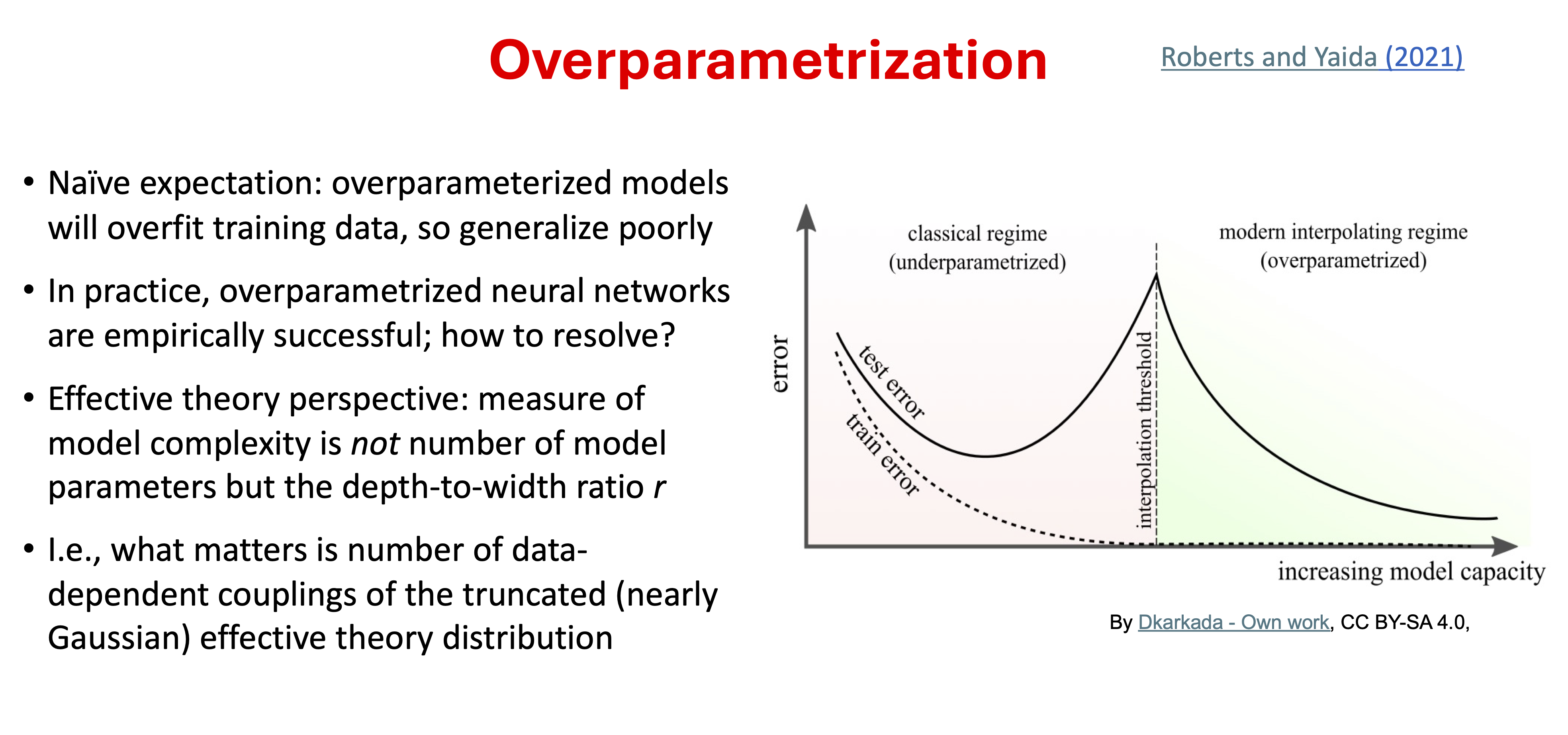 Dan Roberts, in an essay entitled “Why is AI hard and Physics simple?” [Rob21], claims that the principle of sparsity means that methods of theoretical physics and associated physical intuition can be powerful in understanding machine learning. Roberts interprets Wigner’s observations about “The Unreasonable Effectiveness of Mathematics in the Natural Sciences” as “the laws of physics have an (unreasonable?) lack of algorithmic complexity”. The key idea is that many neural network architectures (including the common ones) have a well-defined limit when the network width (which is the number of neurons in each layer) is taken to infinity. In particular, they reduce to Gaussian processes (GPs), and with gradient-based training they evolve in a clear way as linear models according to the so-called neural tangent kernel (or NTK).