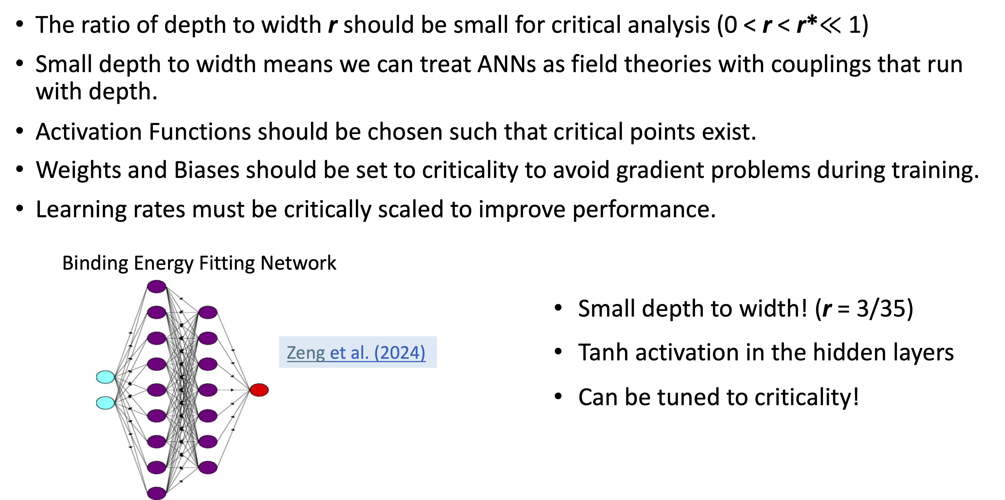 Neural network criticality offers a means to understand neural network behavior, as well as providing prescriptions for architecture and training hyperparameters. Here we have explored the non-empirical approach to understanding ANNs using a field-theory-based criticality analysis (ANNFT). We used a protoypical nuclear physics ANN as a testbed, namely a two-input/one-output feed-forward network trained from the AME2020 dataset to fit nuclear binding energies.